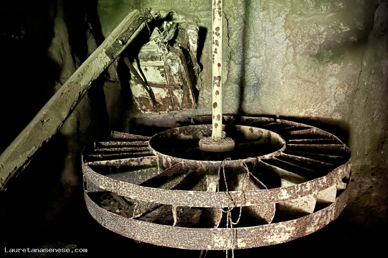 Another feature that can be seen by visiting the remains of this mill, is made up of a horizontal axis wheel in the prison, instead of the classic reticle present in all the other mills. We do not know if and when the transformation of the operating structure has taken place, even if the still existing iron wheel appears to be a relatively recent achievement.
