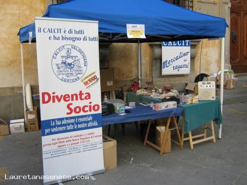I ragazzi della Scuola del Comune di Cortona e l’ associazione CALCIT, ogni anno organizzano un mercatino a scopo benefico che si svolge verso la metà del mese di Maggio e vi si possono fare degli ottimi acquisti. La manifestazione, giunta nel 2009 alla venticinquesima edizione, persegue lo scopo del CALCIT, ossia l'impegno civile e sociale per la ricerca, la prevenzione, la cura, l'assistenza agli ammalati di cancro e il sostegno alle strutture sanitarie. Il CALCIT intende offrire un servizio qualificato, organizzato, completamente gratuito.