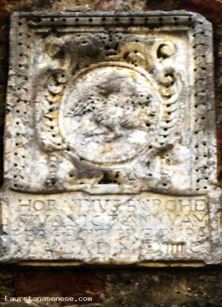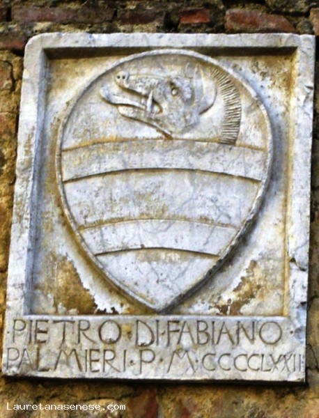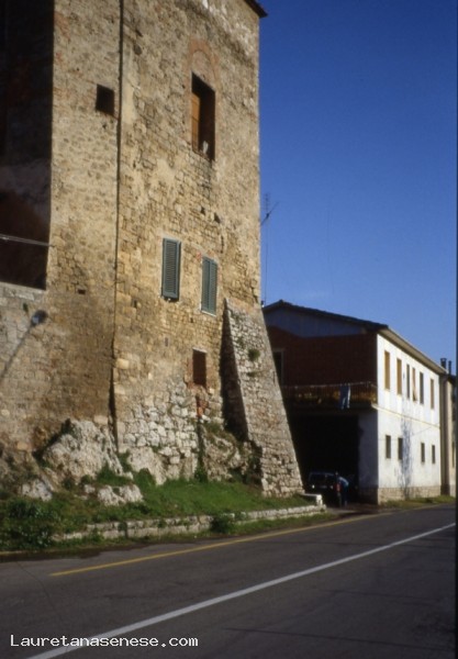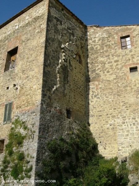 This building, originally the biggest tower in the town walls, was for at least three centuries (from the 1300s through the 1500s) the seat of power in Asciano, as demonstrated by the many aristocratic coats of arms embedded in the façade. Located at the corner of the Piazza del Grano (the Grain Square), it was well situated to keep a close eye on the local merchants. After having been made over as a theater for the town, it is now in a state of abandon.