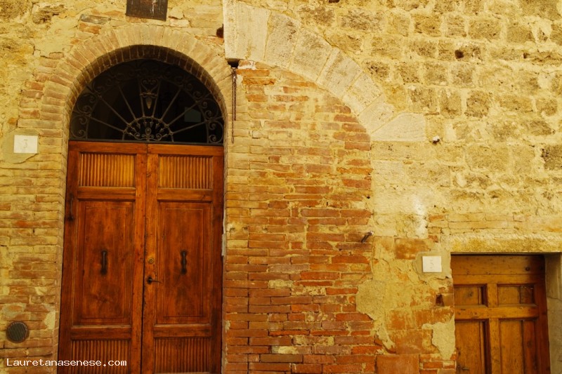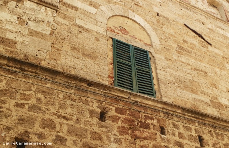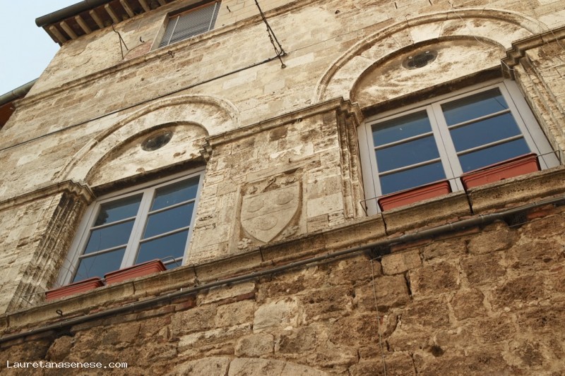 The architecture of the Asciano residence of the Tolomei family is characterized by a travertine façade opened by two very lovely late gothic windows with sharply arched gables. Despite modifications over time, it preserves the typical form of dwellings used for the commercial activities of the owners. It is characterized by a courtyard with a broad entrance way for loading and unloading goods.