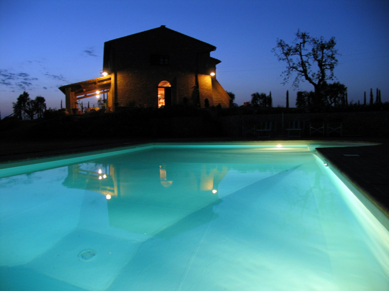 “Podere Fornaci” is an ancient farmhouse of the nineteenth century, dipped into the heart of Crete Senesi, completely restructured by the present owners. The apartments reserved to our guests are well-furnished and provided with all kind of comforts. The structure has a privileged position on the top of a hill, from which you can enjoy a splendid view over the surrounding country. The wide stretches of waving hills, alternated to calanques, are changeable places and they appear different according to the period of the year. This is the right place for spending a relaxing holiday. Not far away, there are the Chianti’s vineyards, Siena ( only 19 km far), San Gimignano Montalcino, Montepulciano, Pienza, Cortona and the spa facilities of Rapolano Terme. All the apartments have an external space, equipped with chairs and tables for outdoors meals. The garden is equipped with barbecues at our guests’ disposal. Inside the farm, about 50 hectares completely enclosed, you can go for a walk or go fishing in a lake in the bottom of the valley.