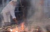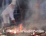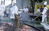 In una gratella gigante di 14 metri vengono cucinate le bistecche alla fiorentina, rigorosamente di carne di razza chianina, cotte al sangue, come vuole l'antica tradizione toscana.