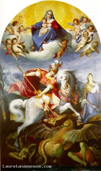 Il grande quadro a lunetta,rappresenta San Giorgio che uccide il drago; la tela, di particolare impatto emotivo, colpisce l’osservatore per la grande luminosità, intenso impatto cromatico e la calibrata composizione.