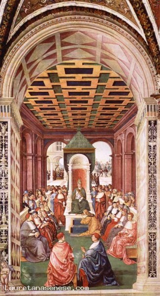 04 - Enea Silvio fa atto di sottomissione a Eugenio IV Siena