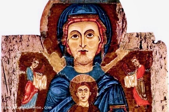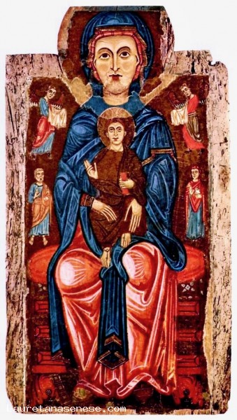This work by the Master of Tressa has a structure similar to that of the Madonna of Tressa: eyes looking upward, faces rendered with unshaded lines of light and shadow, and basic, bright colors. However, improvements derived from the example of the Lucca-born Berlinghiero Berlinghieri and other figurative movements are evident, such as the streaks of lighter highlights in the drapery, the greater movement of the mother and child's legs, and Mary's more familiar grasp of the Child.