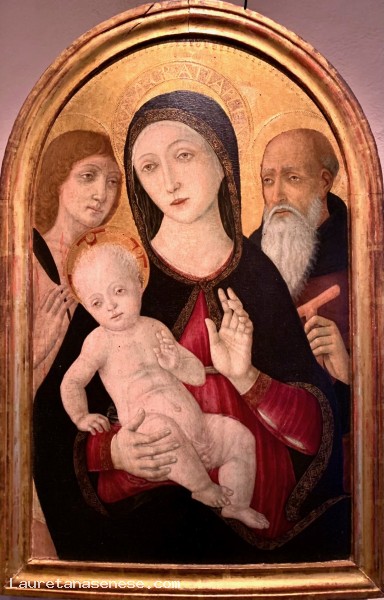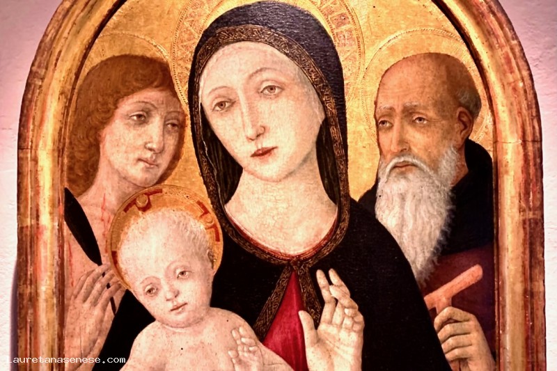 Panel depicting the Madonna and Child between Saints Sebastian and Anthony Abbot by Guidoccio Cozzarelli, dating back to the second half of the 15th century.