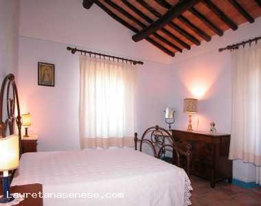 Il meleto è uno stupendo podere Toscano, completamente appartato, tradizionale, immerso nella bella campagna delle colline Senesi e vicino alla regione del Chianti, a Siena, a Firenze e ad Arezzo. Costruito più di 200 anni fa con pietra del luogo, il podere è stato restaurato, con attenzione e sensibilità, per dotarsi degli standard di vita moderni, mantenendo al contempo l'atmosfera rustica del passato. Il podere è appartenuto, per un certo periodo, a Lea Massari, l'attrice cinematografica degli anni '60. Le travi in legno a vista originali, i pavimenti in cotto, le finestre e gli infissi alla francese sono parte integrante della personalità della casa. Il Meleto è dotato di un arredo di pregio e confortevole, con mobili rustici e d'epoca. La casa si trova al centro dei suoi 5 ettari di terreno, il quale comprende giardini rigogliosi, olivi, piante da frutto, vigne e boschi perfetti per lunghe passeggiate. Sono disponibili una ampia piscina (16mX8mX2.5m) ed un solarium, ad uso esclusivo degli ospiti. Un custode si occupa della piscina e del giardino.