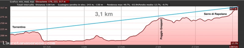 Torrentino was a fairly large castle, strategically located near an important ford of the Ombrone river and a mill. There is attested in 1178 the presence of the Church of S. Angelo, unfortunately already disappeared in 1214.