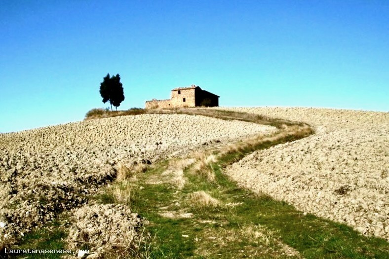 Made a hundred yards on the right of the first curve, you take a rather bumpy dirt road that comes down the road that connects Asciano in Lucignano d'Arbia going from Montauto.