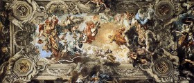 La famiglia Barberini commissionò all'artista gli affreschi del loro palazzo a Roma, dove Pitero da Cortona realizzò la sua opera più famosa: "Il Trionfo della Divina Provvidenza e il compimento dei suoi fini attraverso il potere spirituale e temporale del papato al tempo di Urbano VIII" sul soffitto del gran salone. Lo iniziò nel 1633, ma interruppe i lavori nel 1637 per poi completarli definitivamente nel 1639. Opera chiave nello sviluppo della pittura barocca, è un esempio trionfante dell' illusionismo: il centro del soffitto appare aperto al cielo, le figure viste dal basso sembrano scendere nella stanza e uscirne al tempo stesso.