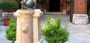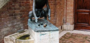 La fontanella del Drago, rappresenta un ragazzo accovacciato che gioca con delle biglie ...