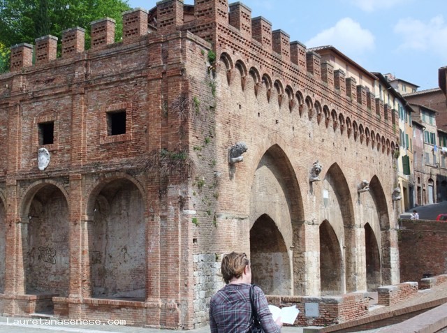Questa è la più antica fonte di Siena e risale al XII-XIII secolo. Infatti, la primitiva Fontebranda è citata già in un documento del 1081. Quella attuale, ben conservata, riporta sul fondo del paramento data e autore della costruzione: Bellamino 1193.