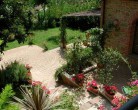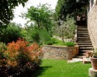 Davanti alla casa vacanze si trova un ampio e panoramico giardino su più livelli, ombreggiato da piante di alto fusto ed attrezzato con mobili da esterno e barbecue.