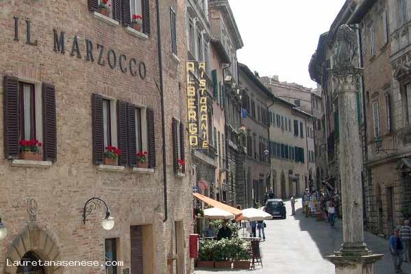 A Montepulciano, città medioevale, che sorge tra le valli della Chiana e dell' Orcia, dai paesaggi incantevoli e ricca di opere d'arte,nel centro storico è situato L'Albergo ""Il Marzocco"" . Palazzo del 1500, gestito con amore dalla famiglia dai primi del 1900.