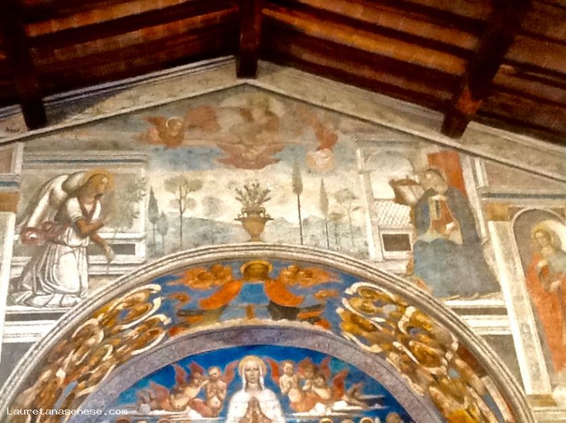 All'internouna splendida abside interamente coperta da affreschi di Girolamo di Benvenuto.