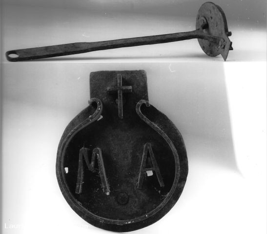 Apparecchio in ferro utilizzato per marchiare a fuoco il bestiame di proprietà.