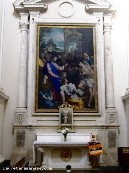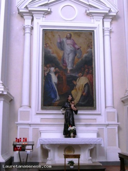 All'interno, una "Resurrezione di Lazzaro" di Alessandro Allori, un "San Bernardino" di Giovanni di Paolo, un "Crocifisso" ligneo policromo di Antonio da Sangallo, una "Crocifissione" di Lorenzo di Credi.
