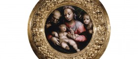 La composizione del dipinto ruota intono alla figura distesa e arditamente scorciata del Bambino dormiente le cui piccole ma robuste membra si intrecciano con eleganti e complicate movenze alle braccia della Madre. La costruzione possente delle figure, cui si accompagna l’adozione di colori liquidi e vibranti, che accendono la composizione di irrealistici e inquietanti trascorrimenti di luce, indica l’accostamento della nostra pittura alle estrose e fantastiche composizioni elaborate da Domenico Beccafumi intorno al quarto-quinto decennio del Cinquecento. Il dipinto venne realizzato in questi anni da Marco Pino, uno fra i più dotati e originali interpreti dello stile del grande pittore senese: muovendo dalla lezione di Domenico Beccafumi, nelle sue pitture Marco Pino rivela una spiccata predilezione per l’insistito plasticismo delle figure, volutamente risaltato ed enfatizzato dalla continua accentuazione dei contrasti chiaroscurali; l’amore per le pose ardite, fortemente scorciate dei corpi dei singoli personaggi indicano inoltre una diversa, appassionata adesione alle complicazioni formali della pittura di Maniera.