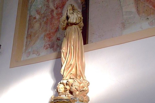 L'architettura esterna della chiesina denota molte modifiche strutturali, mentre l'interno è caratterizzato da un affresco della Madonna del Latte contornata dai Santi. L'opera rinascimentale, attribuita al Sodoma, è stata fortemente danneggiata durante l'ultima guerra mondiale.