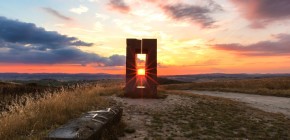 Monumento in pietra realizzati da Jean Paul Philippe nel 1993 e collocato al bivio di tre ...