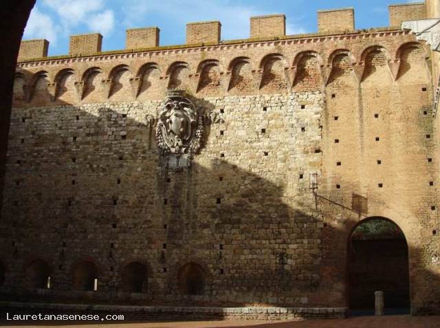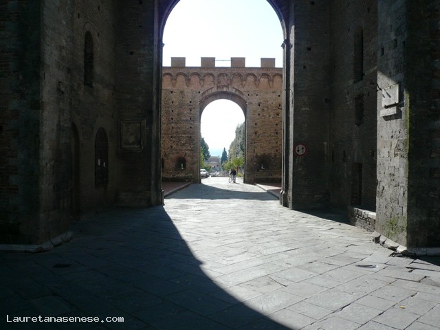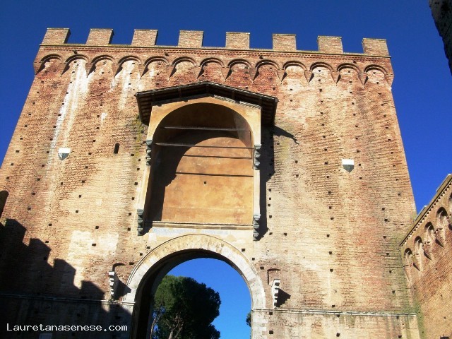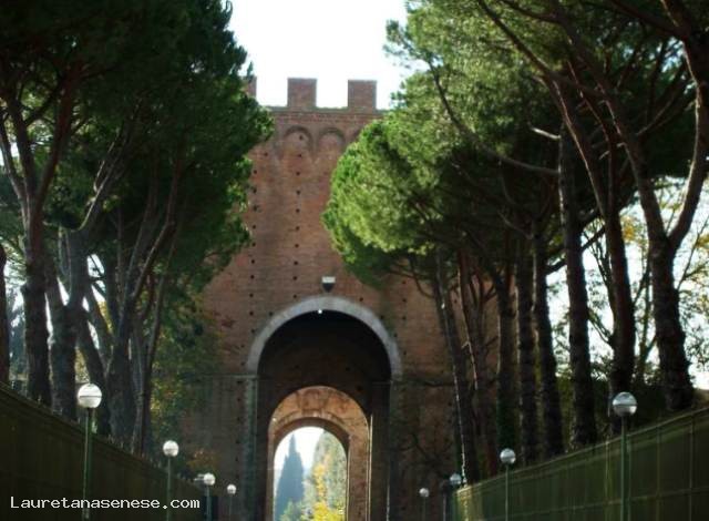 Porta Romana è una delle antiche porte nelle mura fu iniziata nel 1328 con Agnolo di Ventura e Agostino di Giovanni ; nel 1447 venne commissionata a Stefano di Giovanni detto il Sassetta la pittura che la doveva ornare con la raffigurazione della Vergine a impetrare la protezione divina sulla città. La raffigurazione si stendeva con una Gloria di angeli nel sottarco e con l' Incoronazione della Vergine nell'arcone centrale.